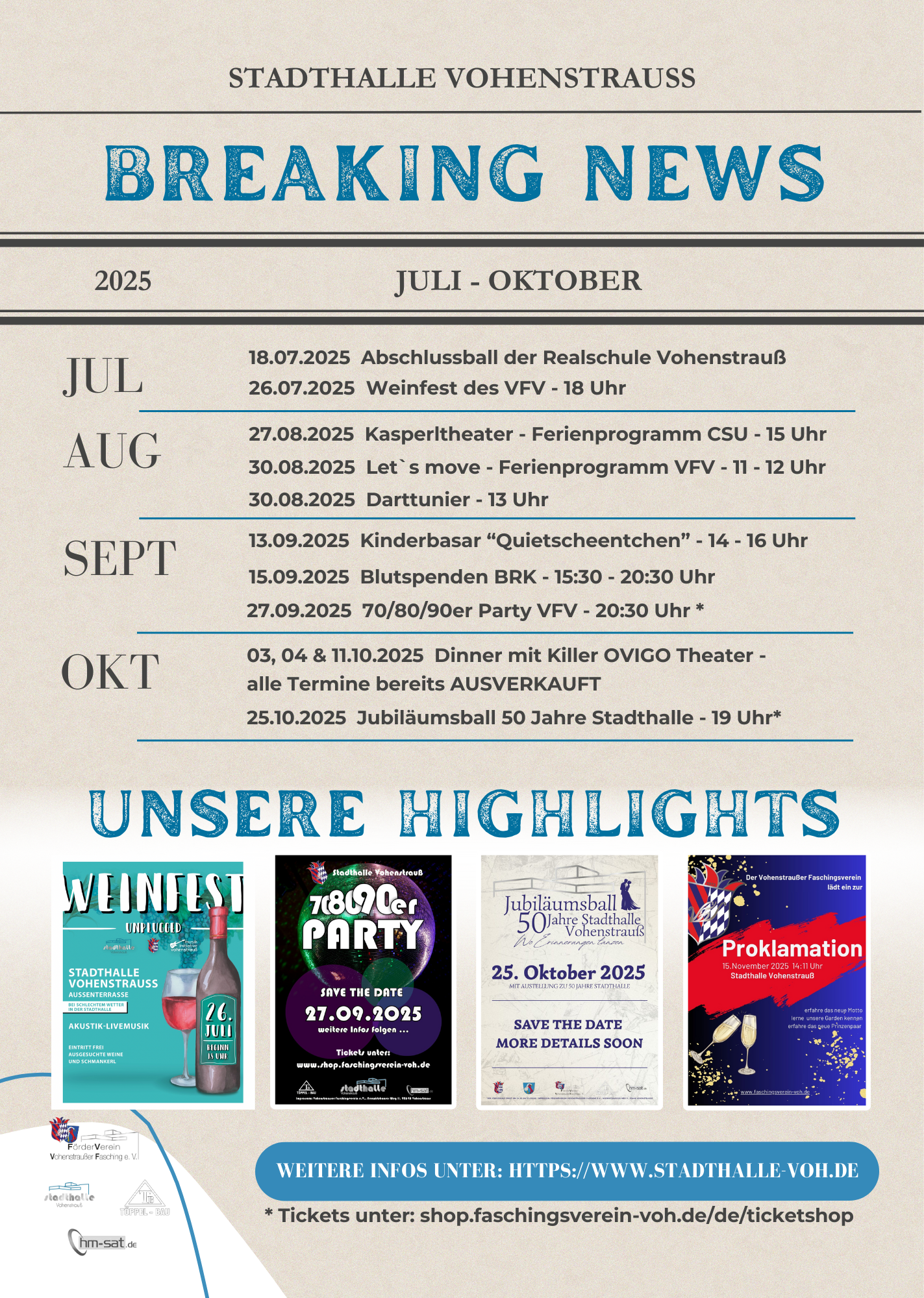 Ob Geburtstag, Hochzeit, Polterabend, Weihnachtsfeier, Theater, Ausstellung oder andere Events, bei uns sind Sie in besten Händen. Die Stadthalle ist die perfekte Location für Ihre Veranstaltung.